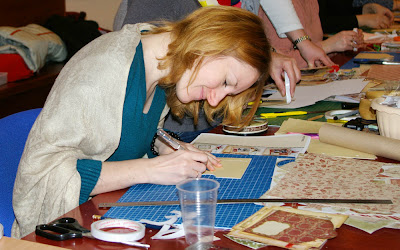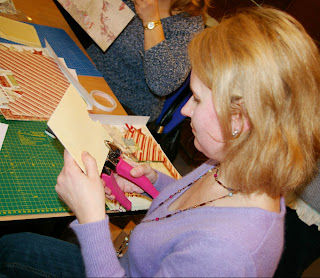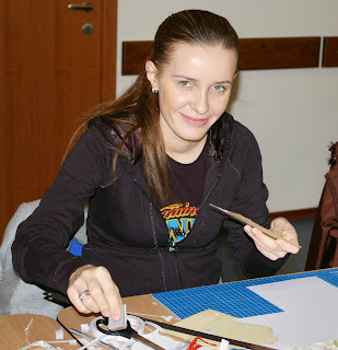 | Следующим по нашему «расписанию» был МК «Детский альбом». За время визита Кэролин мы успели провести этот МК дважды: в субботу вечером и в воскресенье утром.Кэролин Пилер в Москве. День второй (суббота). В Субботу у нас получился очень насыщенный день. В этот день по расписанию в клубе было 2 Мастер-Класса, а вечером мы дружной командой запланировали для Кэролин и ее супруга ужин в ресторане и прогулку по ночной Москве. Но, не будем забегать вперед и начнем субботний отчет с начала первого МК.Утро в нашем клубе началось с МК по новогоднему (рождественскому) мини-альбому. Всем участникам были розданы наборы для МК ,пошаговая иснтрукция к МК ( Кэролин специально написала и прислала их нам заранее, а с переводом нам очень помогла Настя (gypsyscrap). Настя, большое спасибо!!! + еще каждому была заготовлена наглядная цветная распечатка - как пример всех будущих страничек, которые предстояло сделать.Все принадлежности для работы, инструменты, расходные материалы - в полном объеме были предоставлены клубом каждому участнику. Проводился МК все в том же зале, т.к. желающих поучаствовать было много. Кэролин демонстрировала альбом и подробно рассказывала как и что нужно сделать для каждой странички. На фото справа – Аня (Angie). Аня помогала всем нам правильно понять все рекомендации и инструкции Кэролин для этого МК (проще говоря, она взяла на себя ответственную работу переводчика :) ) ![]() Вот несколько фото с этого МК: ![]() ![]() ![]() Все эти дни, на каждом из своих МК Кэролин обязательно уделяла время каждой участнице лично, подходила познакомиться, а по возможности и пообщаться несколько минуток (Мне кажется, что ей были настолько интересны наши девочки, что она была готова разговаривать со многими прямо таки часами… но ограничивала себя, чтобы не мешать творчеству :) ) После МК я неоднократно слышала от Кэролин , как ее очаровали наши Скрап Леди, насколько ей приятно было проводить все эти классы. Она призналась, что не ожидала такой радости девочек даже просто от знакомства с ней , такого теплого приема и получила огромное удовольствие от работы с нашими русскими скрапЛеди.